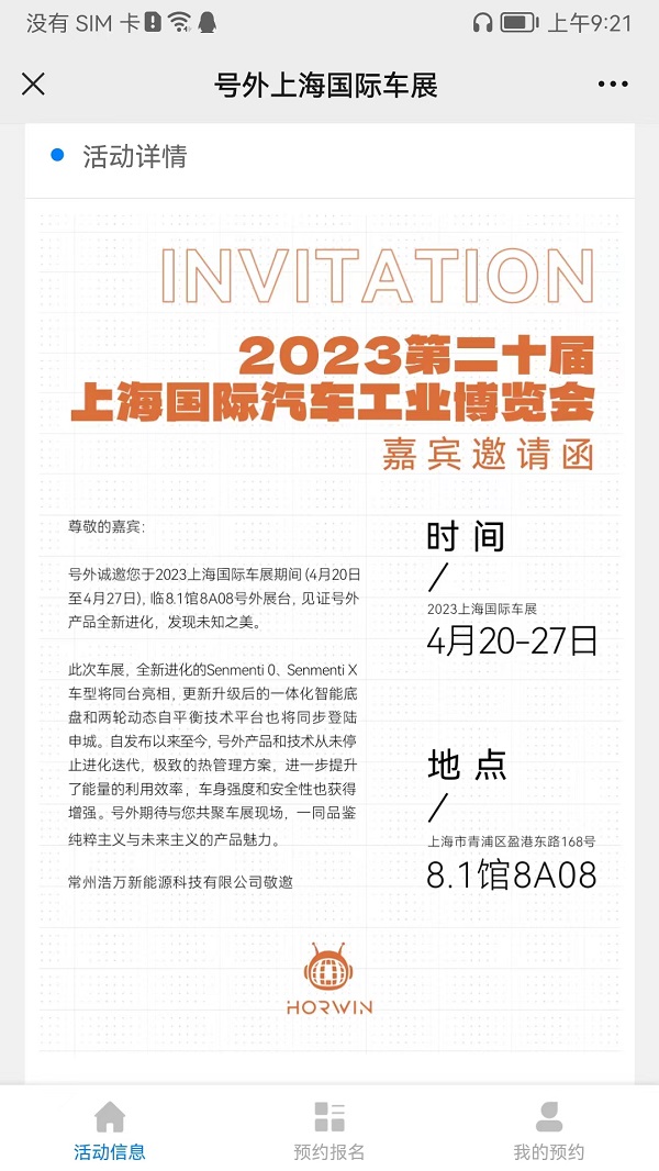 2023第20屆上海國際汽車工業(yè)博覽會——號外上海國際車展由會助力智能會務(wù)系統(tǒng)支持,會務(wù)內(nèi)容包括活動信息,預(yù)約報名,我的報名等內(nèi)容。
